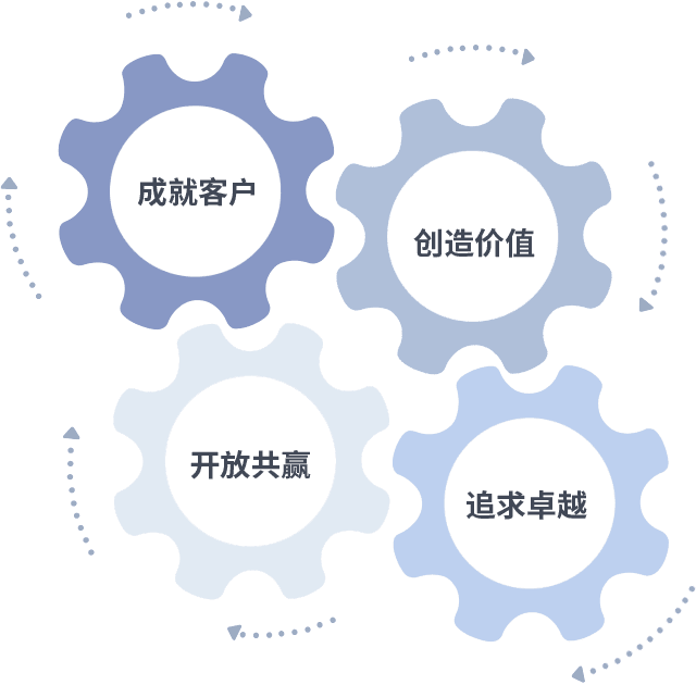 成就客户是一切决策的出发点,,,,创造价值是衡量所有工作的标准,,,追求卓越是征途国际做事做人的态度,,,,开放共赢是征途国际的格局也是最终的结果。。。。价值观的齿轮环环相扣,,推动着组织里的每个人不断向前。。